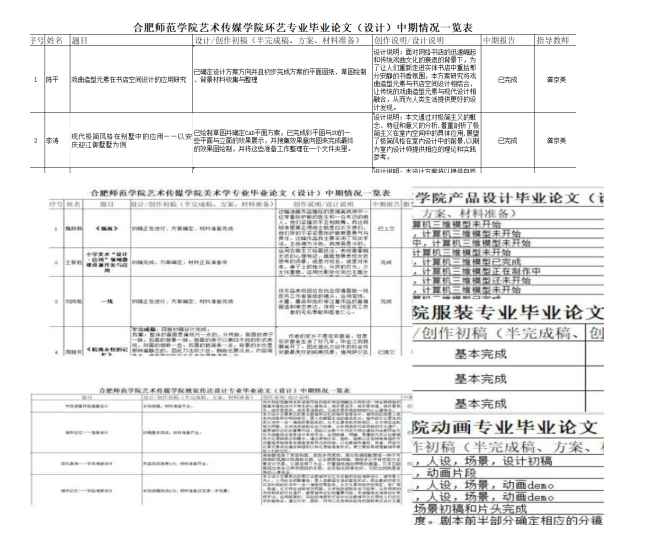 艺术传媒学院以理论实践教研室牵头,在院领导的指导下,建立了线上多维度论文(设计)推进方法,及时将论文(设计)时间节点等重要信息传达给员工。从各系主任到导师再到辅导员李舒老师,逐层信息通知,确保信息到人。一直督促大四员工按照进度完成各阶段任务,保证不让一个员工掉队。目前,公司已经按时间节点完成了中期检查中论文及设计检查工作。