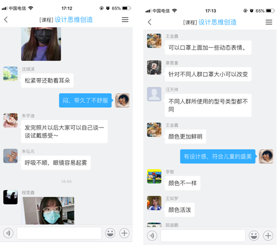 网课的体验感并没有差与现实,在《设计思维创造》这一门课中与朱老师的直播互动让我感觉到还是熟悉的课堂,充实又有趣,网络并没有阻隔热烈的学习气氛。大家也都积极地完成朱老师布置的学习任务,对于课程中发起的讨论和问答可能由于避免了面对面的害羞拘谨,同学们比之前表现得更加积极,思维更活跃。——郭宇静