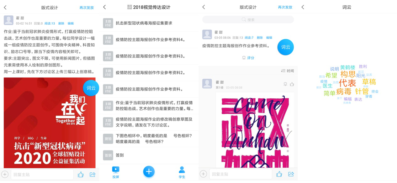 在全国上下万众一心、众志成城抗击疫情中,艺术传媒学院认真落实学校“停课不停教、停课不停学”总体部署,积极把课程思政建设转化为疫情防控和立德树人重要力量,从疫情防控中充分发掘爱国主义、集体主义、中国特色社会主义制度政治优势和生命教育等思政素材,将其融入专业课程教学实践之中,在共同战“疫”中办好“思政大课堂”,探索课程思政改革新实践。诸如,霍甜老师主讲《版式设计》课程,在线上教学实践中立足“三好三力”,设计寓“疫”于教、融“情”于教,施行德道教化、教化人心,从而激发员工的爱国情、报国志、求知欲。