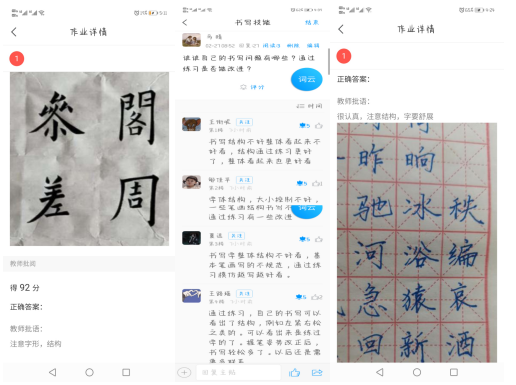 场景三:《书写技能》课程是师范生必修的技能课程,更需要及时与员工沟通。以往的课程我可以当堂示范,但是网络授课上光讲书写基本知识远远不够,所以必须录制书写教学视频。我就准备好设备,将手机固定在一个台灯顶上,把摄像头对准纸面,用另一个台灯打光,边写边讲边录课。为了员工有效学习,有的视屏录了不下五遍。员工在学习后的反响也是令我很是欣慰,一句句的“老师辛苦了”,“老师我的字终于有进步了”就是员工对我认可和回报。