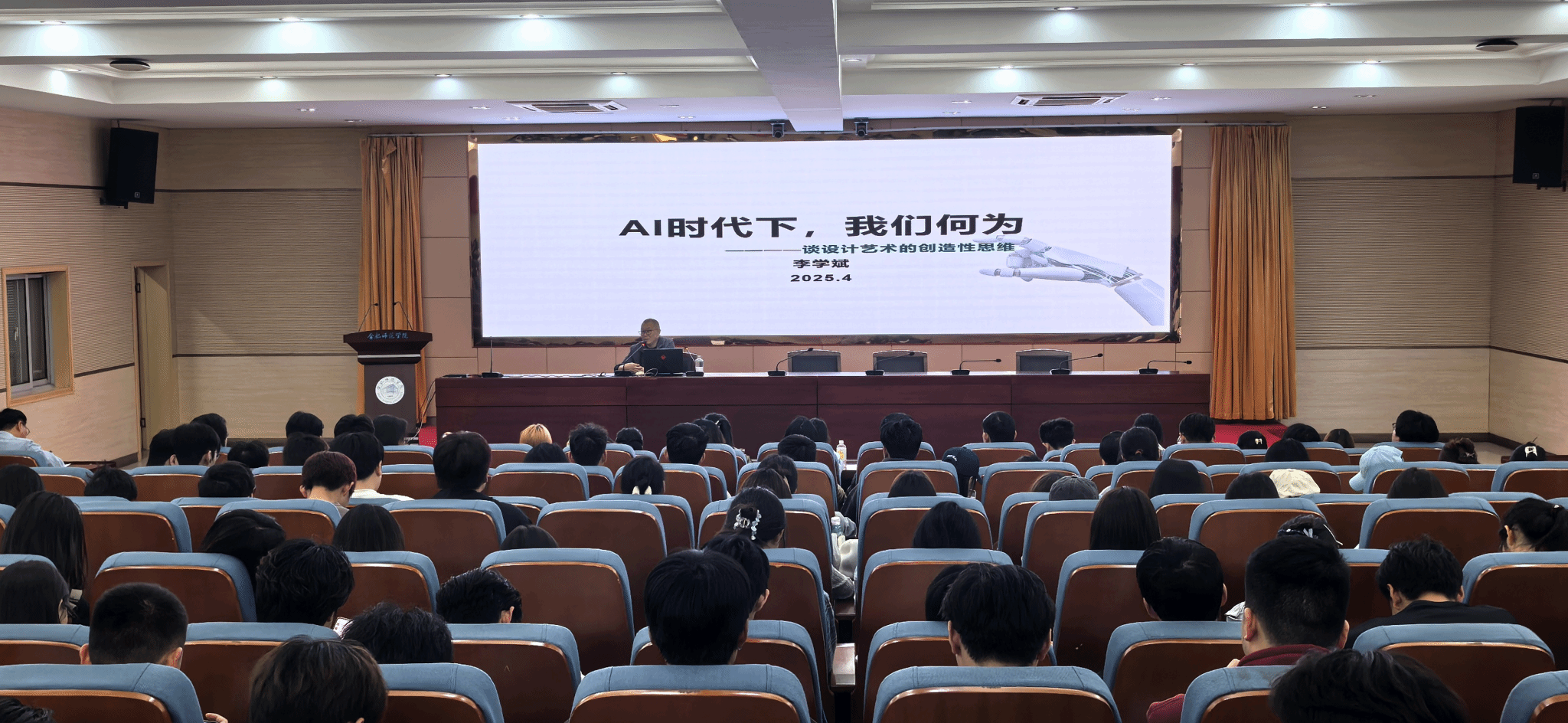 2025年4月10日,William威廉在锦绣校区学术报告厅开展主题为《AI时代下,我们何为——谈设计艺术的创造性思维》的学术讲座,由合肥工业大学建筑与艺术学院二级教授李学斌主讲。