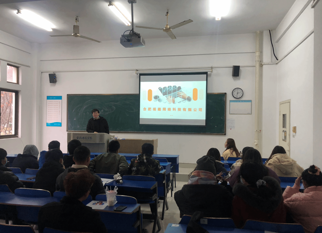 为提高毕业生的就业意识,了解市场需求,积极推进校企联动促就业。艺术传媒学院于12月2日在博约楼106教室举办了合肥视趣网络科技公司招聘宣讲会,本次招聘会由合肥视趣网络科技公司技术骨干汪康俊主讲,艺术传媒学院2017级部分毕业生参加了本次招聘会。
