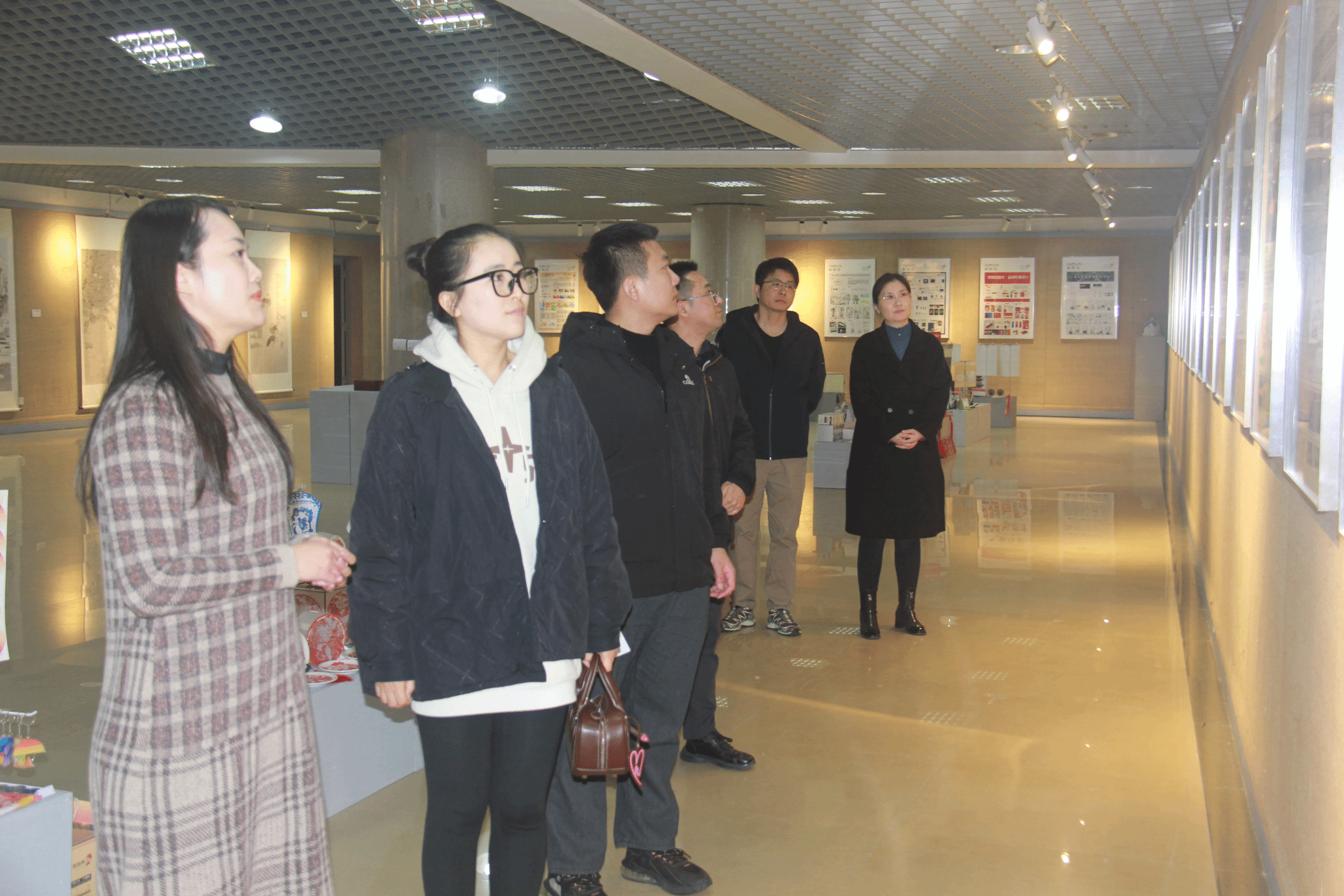 设计系教工党支部书记曹烨君作为向导带领企业代表观看了学院2024届毕业生毕业创作展,通过观展增进企业代表对公司人才培养质量与毕业生专业能力的深入了解。观展结束后,环境设计专业负责人余熙文首先介绍了学院与山水装饰的校企合作关系,多年来为山水装饰输送了大量的优秀毕业生,他鼓励同学们要敢于开口大胆应聘。山水装饰企业代表介绍了公司业务板块、人才需求、招聘条件等内容,展示了企业的发展前景和良好的工作环境。同学们积极与企业代表交流,咨询了职业发展通道、薪资待遇、晋升条件等问题,踊跃投递简历。