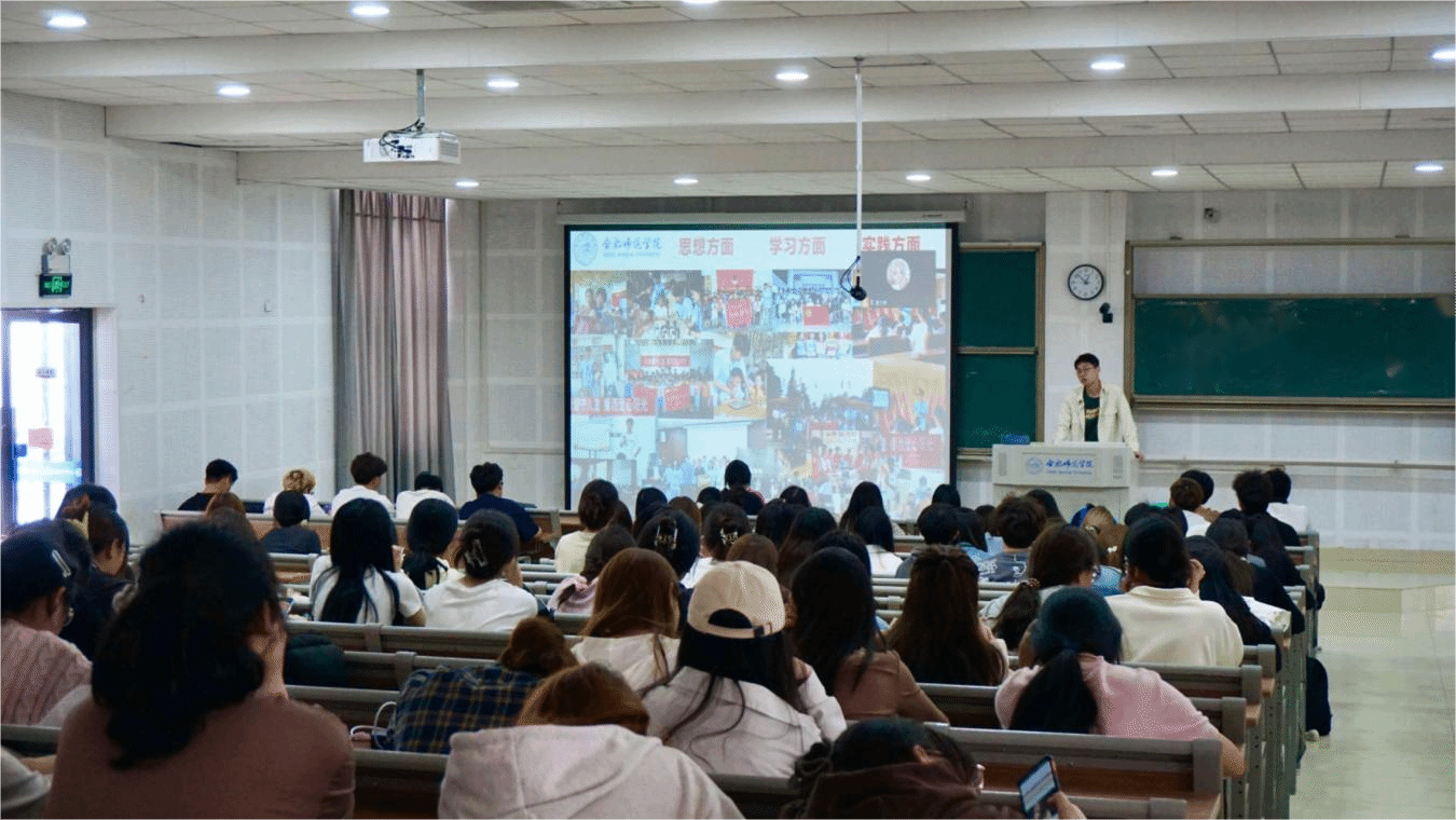 国家奖学金获得者迟飞飞同学从“德、志、体、美、劳”五个方面分享努力拼搏的收获和感悟;学科竞赛榜样王静蕾同学介绍自己如何制定详细的学习计划、积极参与团队讨论、不断反思与调整策略,最终在竞赛中取得优异成绩的经验做法;志愿服务榜样尹布森同学分享自己在志愿服务中的心得体会。
