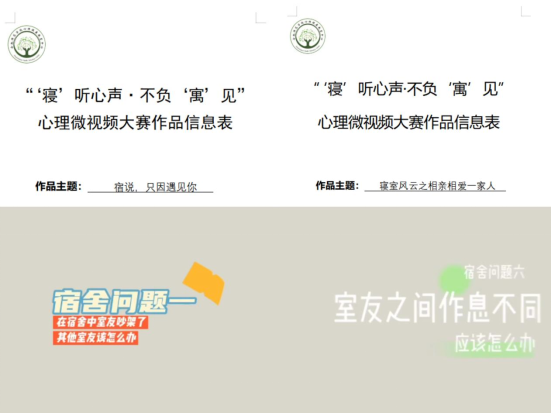 校园心理微视频大赛主题围绕校园常见心理现象,从自我认知、人际交往、心理疾病与危机防范等多个方面进行创作,以员工视角表现对心理健康的认知。学院共收到17件参赛作品,并择优推荐2件作品至员工处,参与校级评选。