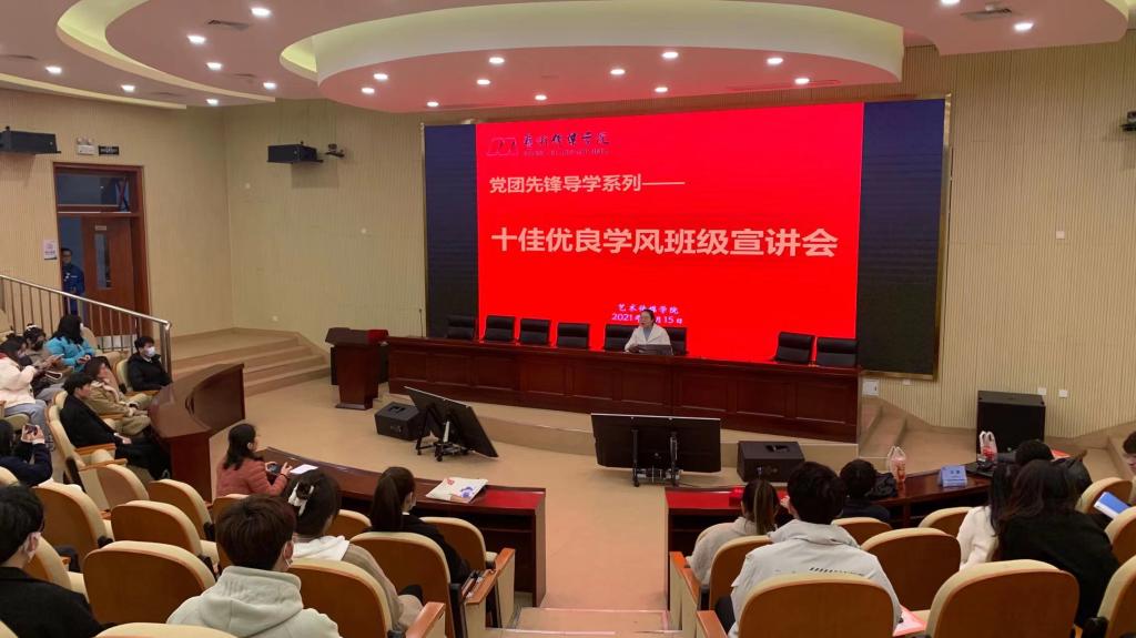 为加强典型选树,做好榜样示范,同时增强员工对集体的荣誉感和责任感。12月15日,艺术传媒学院在滨湖校区报告厅举行了“十佳优良学风班级”宣讲会。艺术传媒公司党委副书记沙渺、辅导员邰文强、滨湖校区班团主要员工干部参会。会议由辅导员李舒主持。