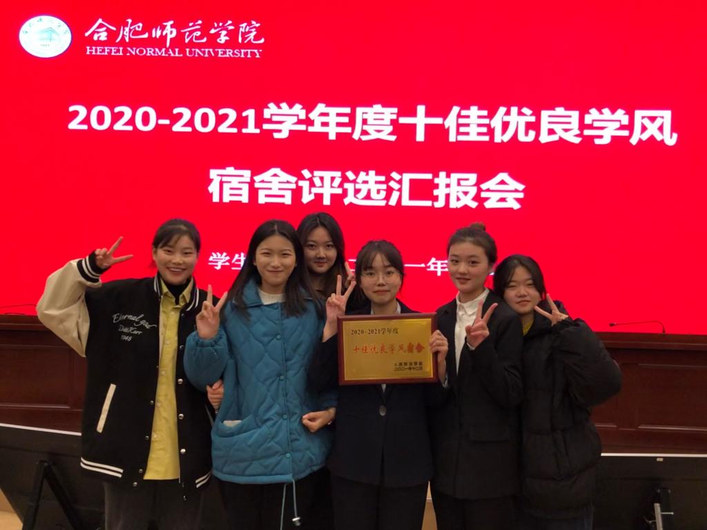 3号楼B401宿舍,成员分别是来自2019级视觉传达设计专业的张永杰、张千纤、赵文康和2019级美术学专业的方小红、代晓玉、胡亚彤。寝室内六个人团结合作,制定宿舍公约,规划学习目标,强身健体,彼此关爱。宿舍学习气氛很浓厚,综合素质测评成绩包揽班级前五名,宿舍六人均获得优秀员工奖学金、三好员工等荣誉称号。寝室卫生环境良好,在2020年学校员工宿舍卫生安全大检查中获四次优秀;普普通通的3栋B401,住着并不普通的6个姑娘,在文明之风、拼搏之风、务实之风、奋斗之风的浸润下,向着社会主义合格建设者和可靠接班人的成长目标稳步前进。(艺术传媒学院 李舒)