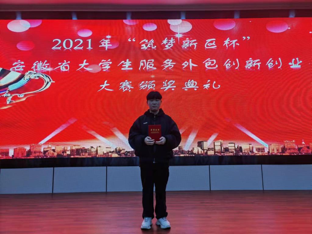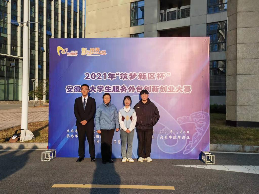 12月4日,由安徽省教育厅主办,安徽财经大学、安庆筑梦新区管委会承办的2021年“筑梦新区杯”安徽省老员工服务外包创新创业大赛决赛圆满结束。在马克思主义学院傅文茹老师、合肥市第六十八中学葛守稳老师指导下,由艺术传媒学院19级环境设计班茌选正同学、马克思主义学院19级思政班陈玉钊、方媛、和20级思政班张倩、夏文辉五位同学组成的“速速降压队”获得安徽省A类竞赛(企业命题类)省级一等奖的优秀成绩。