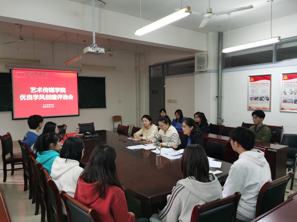 为营造良好的学风氛围,选树学风典型,提高学风创建成效,11月4日,艺术传媒学院开展2021年优良学风创建院内评选活动,本次活动由艺术传媒公司党委副书记沙渺,辅导员赵振岭、戴玉佩、邰文强、李舒担任评委,全院共20个班级,30个宿舍、31名个人参加评选,评选会分两个校区举行。