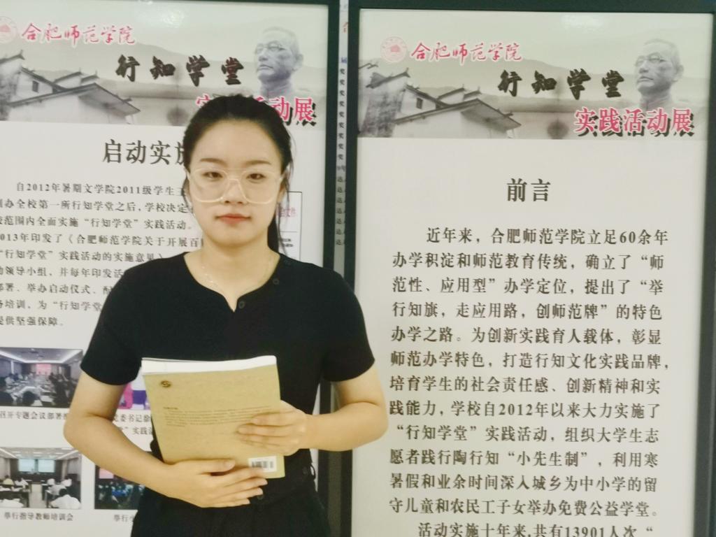 艺术传媒学院2018级产品设计专业,任班级学习委员,艺术传媒学院艺愿服务队行动队队长。先后获得2019-2020学年国家励志奖学金、第三届“国青杯”全国高校艺术设计大赛三等奖、首届安徽省老员工质量文化与品牌创意设计大赛二等奖、中国·肥西第三节荷花文化节文创设计大赛优秀奖等荣誉。2019年积极参加暑期社会实践,并获得行知学堂“优秀小先生”称号。