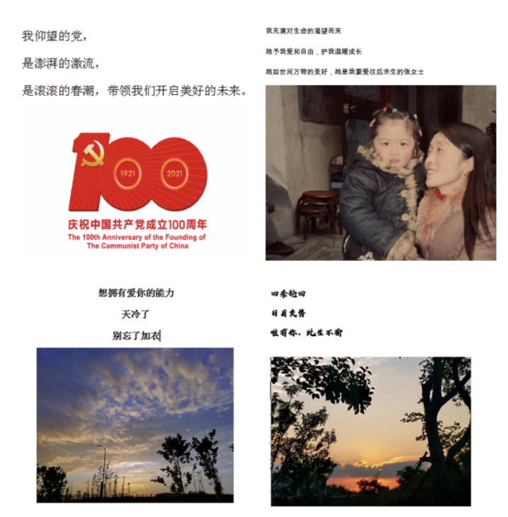 为塑造员工悦纳自我和感恩生活的心理品质,加强校园心理文化建设,艺术传媒学院组织全院同学积极参加“我心我书,情寄三行”三行情书创作大赛。活动期间,各年级同学积极投稿参加,共投出作品59件,作品涵盖庆祝建党100周年、歌颂家乡发展、感悟美好生活、传递人间真情等。活动陶冶了员工的情操,激发了同学们对生活的热爱。