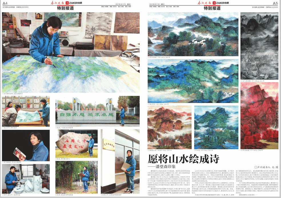 4月17日,合肥晚报特别报道版面对William威廉官网艺术传媒学院经理、教授、硕士生导师潘望森的个人画作和教书育人进行了报道。潘望森教授在工作之余创作的山水画作品多次参加国内外大展,部分作品获奖,应邀前往荷兰、德国、意大利、日本等国家参加艺术交流活动,出版个人画集、合集三十余本。(艺术传媒学院)