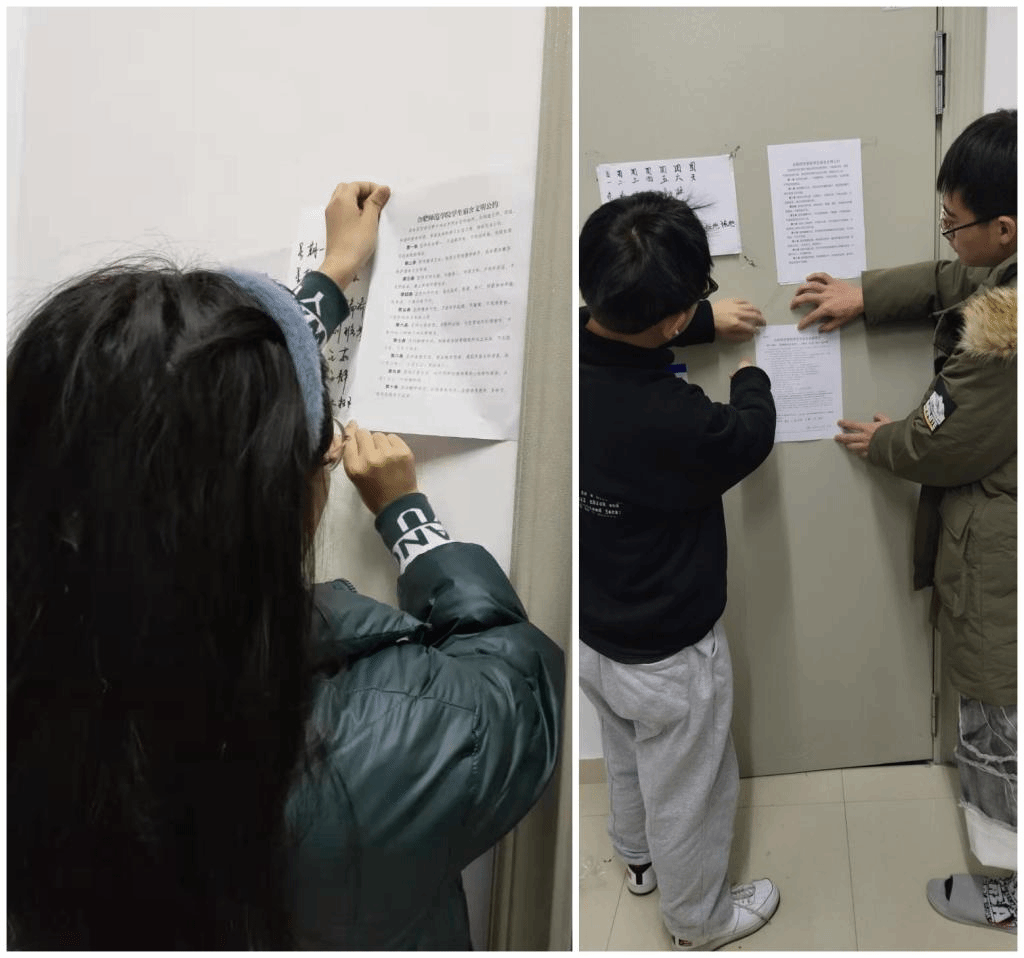 各年级辅导员组织同学们认真细致的落实《宿舍文明公约》,组织签订《宿舍安全用电承诺书》并张贴到每一间寝室,进一步提高员工宿舍安全意识。