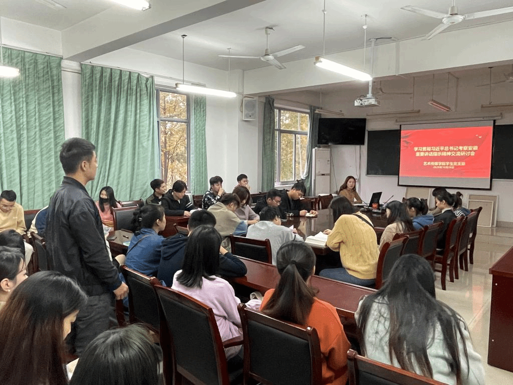 10月28日下午,艺术传媒学院员工党支部组织全体员工党员开展主题党日活动,以专题学习研讨会的形式学习宣传贯彻习近平总书记考察安徽重要讲话指示精神,活动由员工第二党支部书记史娌娇主持。