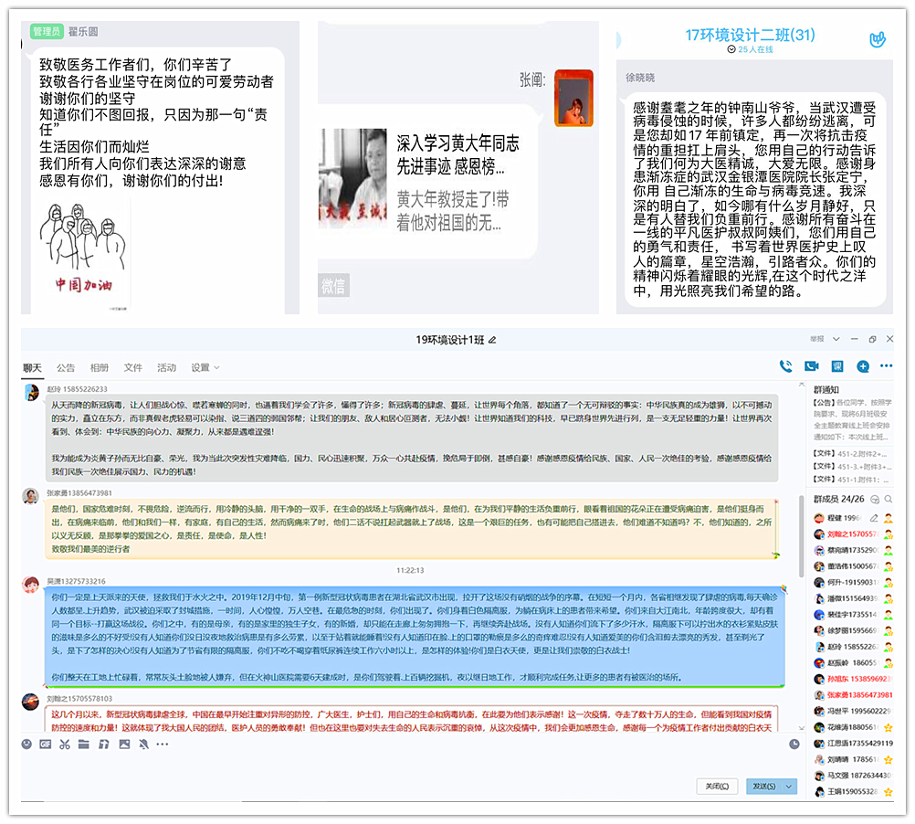 根据不同年级特点,开展线上感恩教育活动。毕业班辅导员结合文明离校教育活动,教育毕业生要有感恩意识,懂得感恩国家,回报社会;同时向毕业生普及征信知识和金融知识,提高毕业生征信意识、风险防范意识和法律意识。其他年级员工结合疫情防控期间突出的人和事,将自己的感悟在主题班会上进行“云”分享,同学们纷纷表示要常怀感恩之心,感恩国家、感恩父母、感恩师长、感恩获得的帮助。