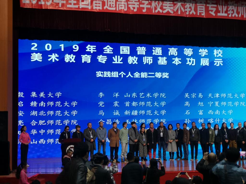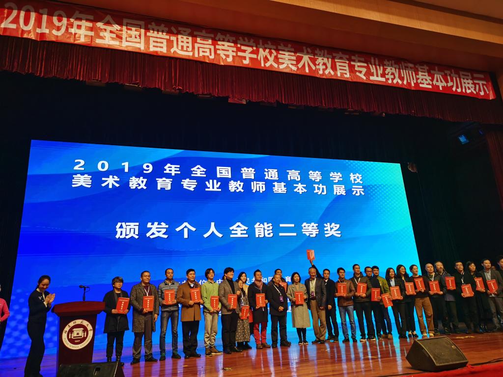 2019年全国普通高校美术专业教师基本功展示分为实践组和理论组两个组别,每组分设教学展示、专业能力展示、经典作品赏析三个项目。在本次展示活动中,艺术传媒学院代表队教师取得了良好成绩,胡亮老师获得实践组个人全能二等奖、实践组专业能力展示单项奖,马晴老师获得理论组经典作品赏析单项奖,韩岩岩老师获得实践组教学展示单项奖。同时,艺术传媒学院代表队老师与兄弟院校开展了更广泛、更深入的交流研讨,对探索构建更高水平的美术学专业人才培养体系,培养合格的德智体美劳全面发展的社会主义建设者和接班人提供了很好的借鉴。(艺术传媒学院 胡亮)