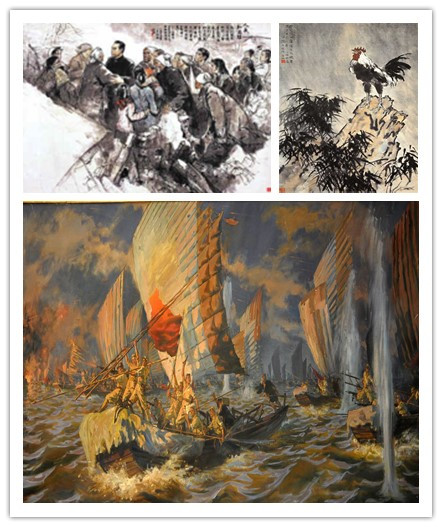 余洋老师以“艺术家的家国情怀”为主题,以《愚公移山》《九方皋》《风雨鸡鸣》《横渡长江》《开国大典》《占领南京总统府》《青春》《人民和总理》《屈原》等系列历史画作为对象,引导同学们从作品创作的历史背景、创作过程、文化价值、历史价值和审美价值等方面对每幅作品进行了鉴赏。他把美术史和中国现当代革命史结合起来,讲述了一个个生动鲜活的历史故事。他从《愚公移山》作品开篇,介绍这幅作品取材于《列子·汤问篇》,创作于1940年,当时正值中国人民抗日的艰难时期,徐悲鸿画愚公移山,其用意是要以形象生动的艺术语言鼓励人民以愚公移山的精神,不畏艰苦、坚持抗日,夺取最后胜利。他继续介绍到,同时期(1945年),毛泽东主席在党的七大会议上作《愚公移山》主题报告,提出“下定决心,不怕牺牲,排除万难,去争取胜利”,号召全国军民团结奋斗,争取抗日战争的最后胜利。两位都把国家与民族命运装在心中,把自己融入到国家命运之中,所以一位成为人民领袖,一位成为人民艺术家。余洋接着从其他作品中,带领同学们了解认识艺术家的英雄情怀和平民情怀。