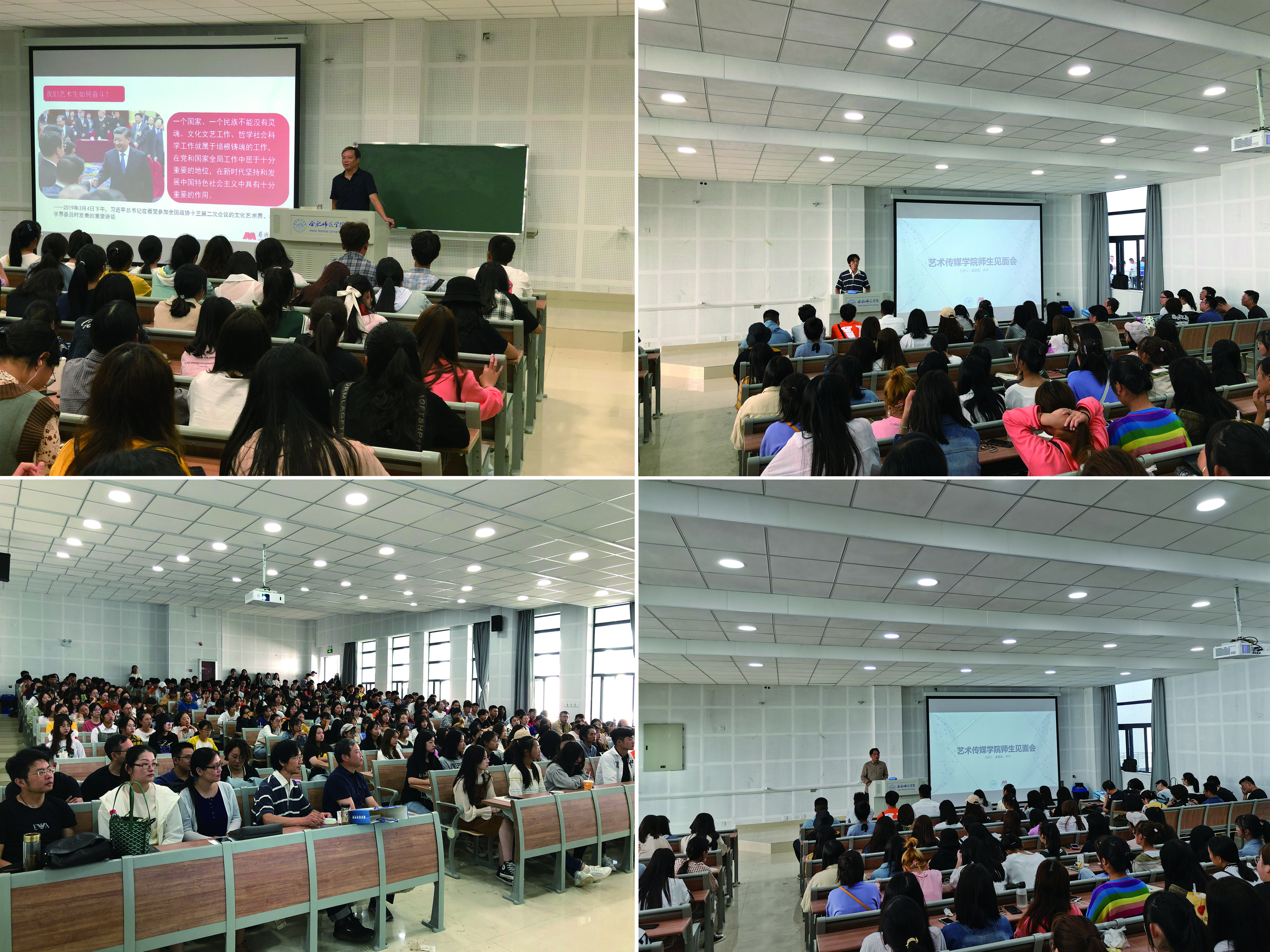 23日上午,艺术传媒学院2019级师生见面会在滨湖校区博学楼D101教室举行。公司党政领导班子成员、各专业负责人、新生辅导员以及全体2019级新生参加了大会。大会由19级新生辅导员潘文锦主持。