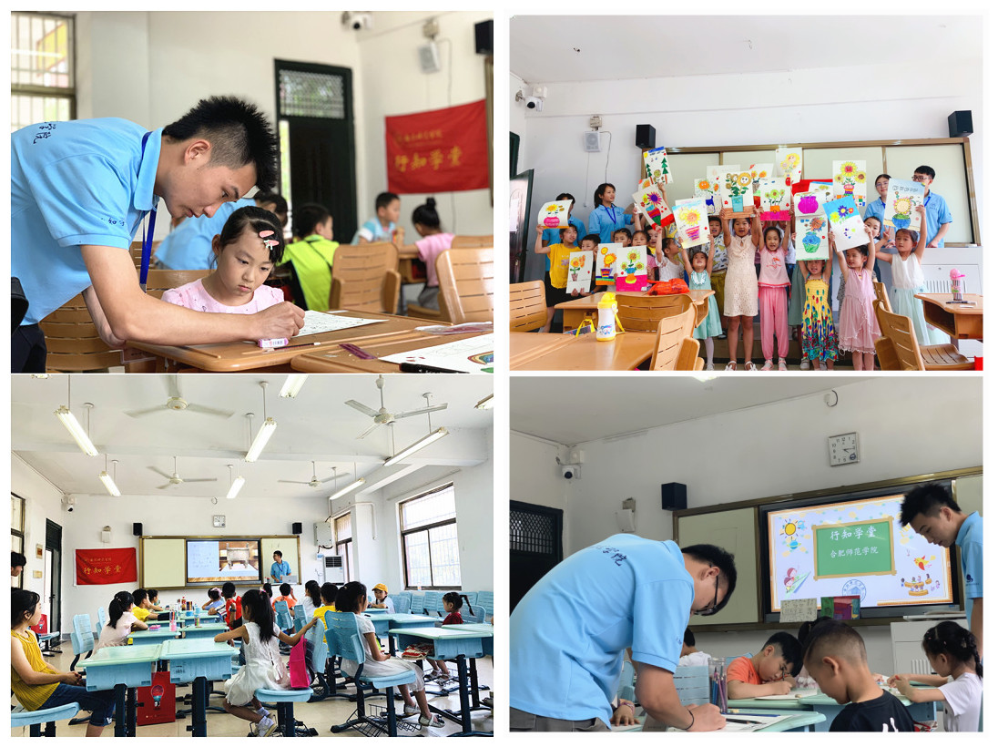 在李玉的积极推动下,庐江五中行知学堂诞生了。7月1日起,来自艺术传媒学院和外国语学院共计12名小先生,开始了为期30天的“小先生”生涯。截至目前,该学堂已经招收将近百名7—11岁的留守儿童,设置了书法、绘画、行知文化、思想引领、安全教育、红色教育、传统文化等教学内容。