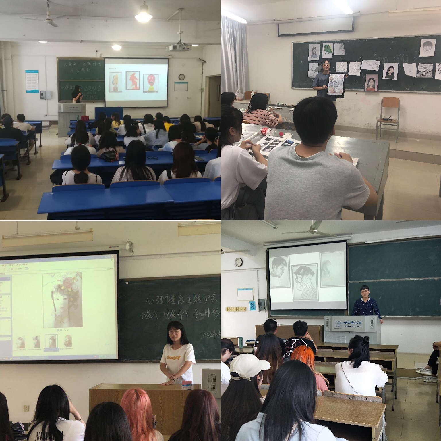 班会上,各班还结合公司的心理健康教育品牌活动——心理自画像,让班级每位参加心理自画像比赛的同学上台解读自己的自画像作品,分享创作的心理过程和创作思路,班主任根据同学的分享,进行解读和情感交流,有效的拉近了师生之间的感情。