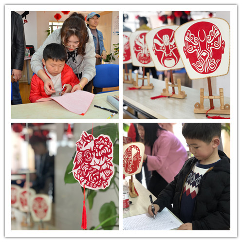 在了解基本知识后,志愿者带领他们实际操作,亲自动手学习剪纸。小学员五人分为一组,志愿者们分别教他们剪纸的方式和步骤。小学员们认真按照教学步骤学习,剪出了自己喜爱的造型,并向志愿者们展示自己的学习成果。