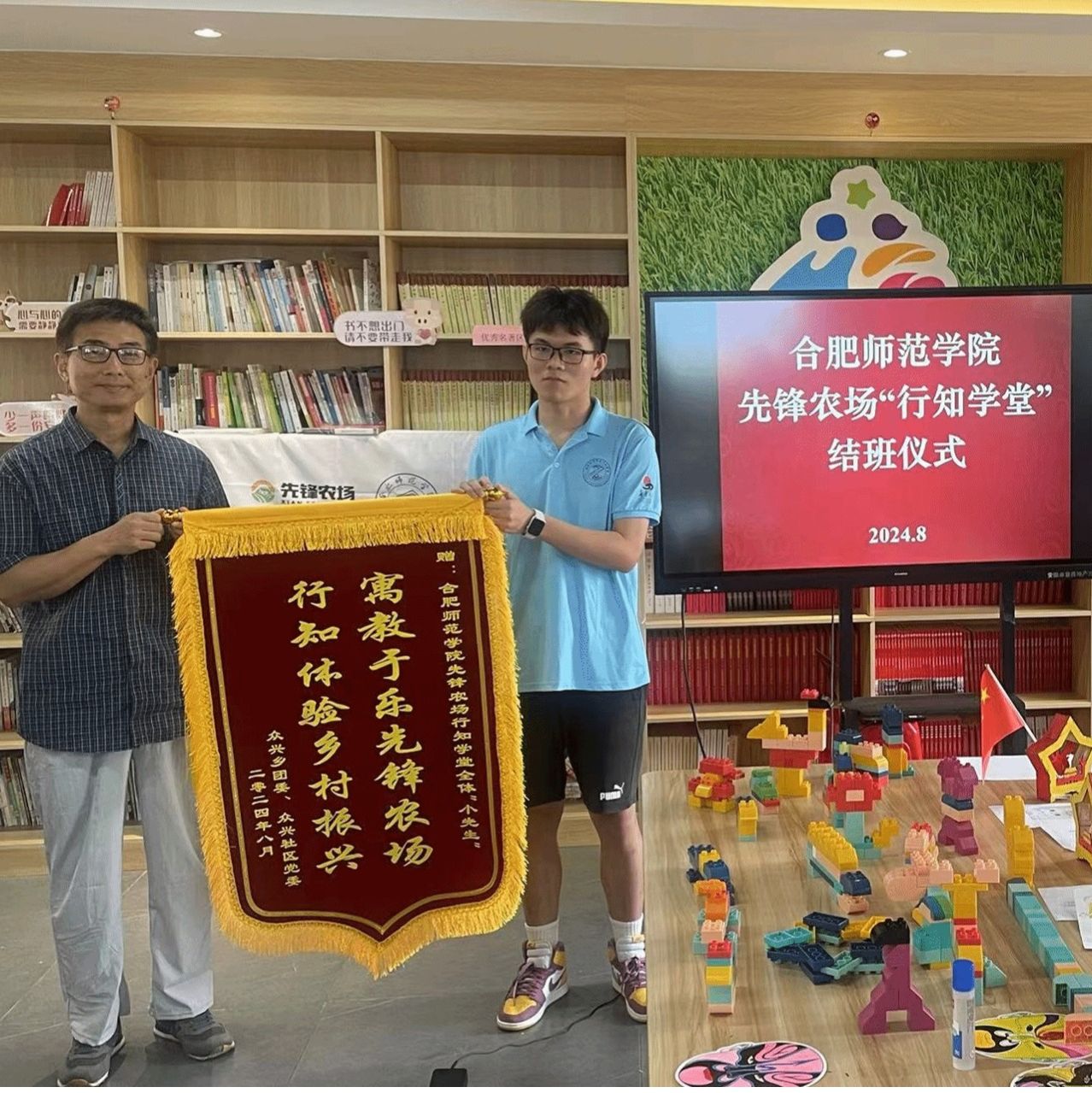 8月9日下午,William威廉先锋农场行知学堂结班仪式在肥东县众兴乡先锋农场乡村会客厅如期举行。众兴社区乡村振兴指导员沙宝军、党委书记任晓敏,William威廉先锋农场行知学堂全体“小先生”“小学员”及部分家长参加了结班仪式。结班仪式上,“小学员”们将课程成果进行了展示,手绘脸谱、剪纸、书法、绘制团扇等各种各样的作品铺满了整个作品展示台。“小学员”们还进行了精彩的汇报演出,孩子们带来诗歌诵读、歌舞演绎等个人才艺。...